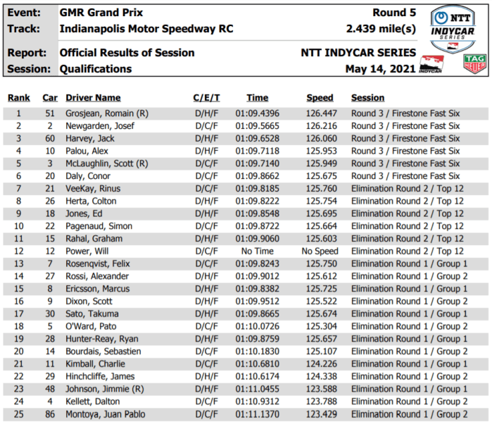 Row 4 features his teammate Rinus VeeKay and another young star in Colton Herta. It was announced earlier in the day that the second-generation driver has signed a two-year extension with Andretti Autosport.