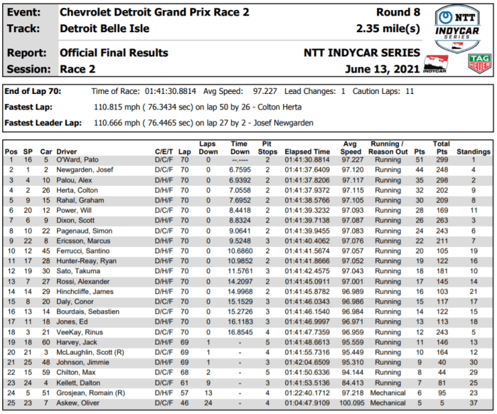 Chevrolet Detroit Grand Prix Race 2 Box Score