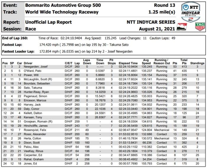Bommarito Automotive Group 500 Box Score