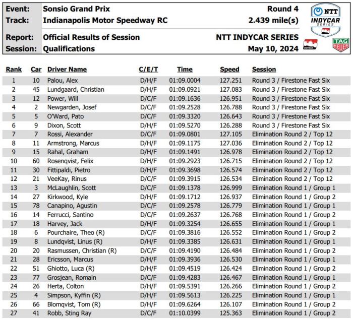 “It’s been a tough day, honestly,” Palou said. “Practice 1 and Practice 2 wasn’t amazing. Even the start of qualifying, too. So, really happy to be there. Didn’t expect it. I’ll take it.