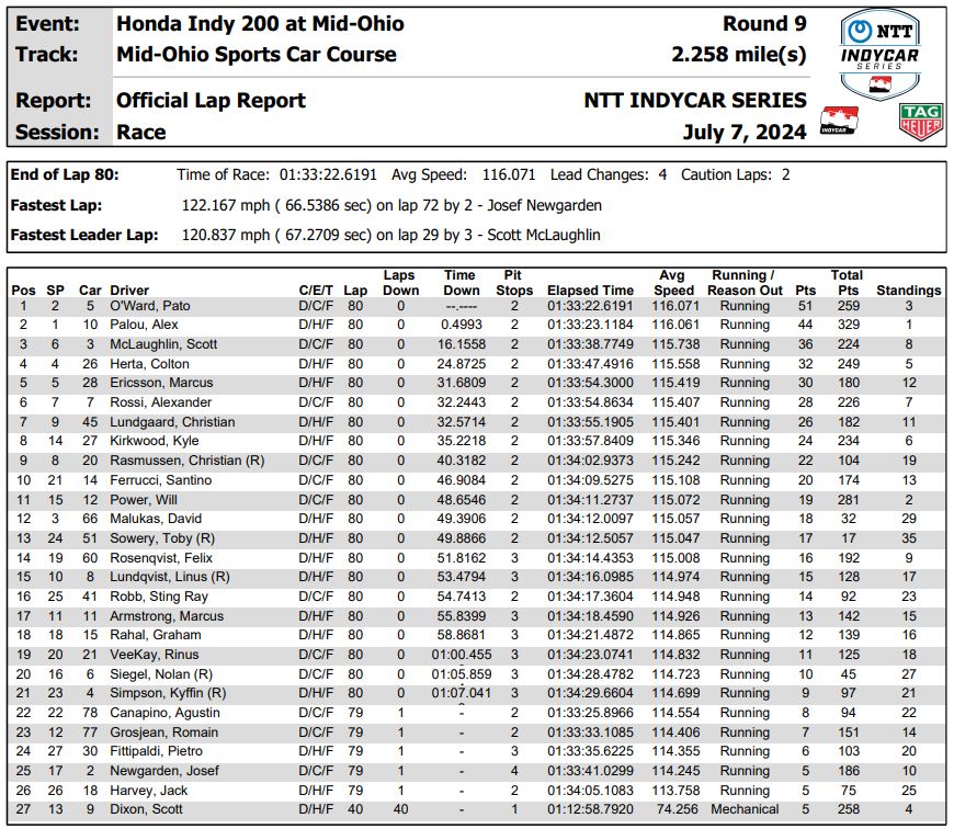 Pato O’Ward resisted constant pressure from NTT INDYCAR SERIES championship leader Alex Palou over the closing laps to win The Honda Indy 200 at Mid-Ohio Presented by the 2025 Civic Hybrid on Sunday.