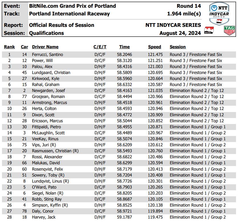 Ferrucci earned his first career series pole in his first-ever appearance in the Firestone Fast Six, turning a top lap of 58.2046 seconds in the No. 14 Phoenix Investors Chevrolet owned by legendary four-time Indianapolis 500 winner A.J. Foyt. It was the quickest lap overall so far this weekend in three sessions on the 12-turn, 1.964-mile road course at Portland International Raceway.