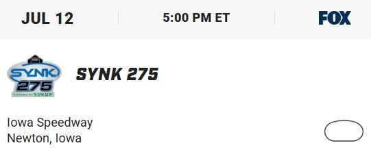 The next NTT INDYCAR SERIES event weekend is the Sukup INDYCAR Race Weekend, a doubleheader July 12-13 at Iowa Speedway. The Synk 275 is 5 p.m. ET Saturday, July 12, with the Farm to Finish 275 at 1 p.m. ET Sunday, July 13. FOX, the FOX Sports app and the INDYCAR Radio Network will broadcast both races live.